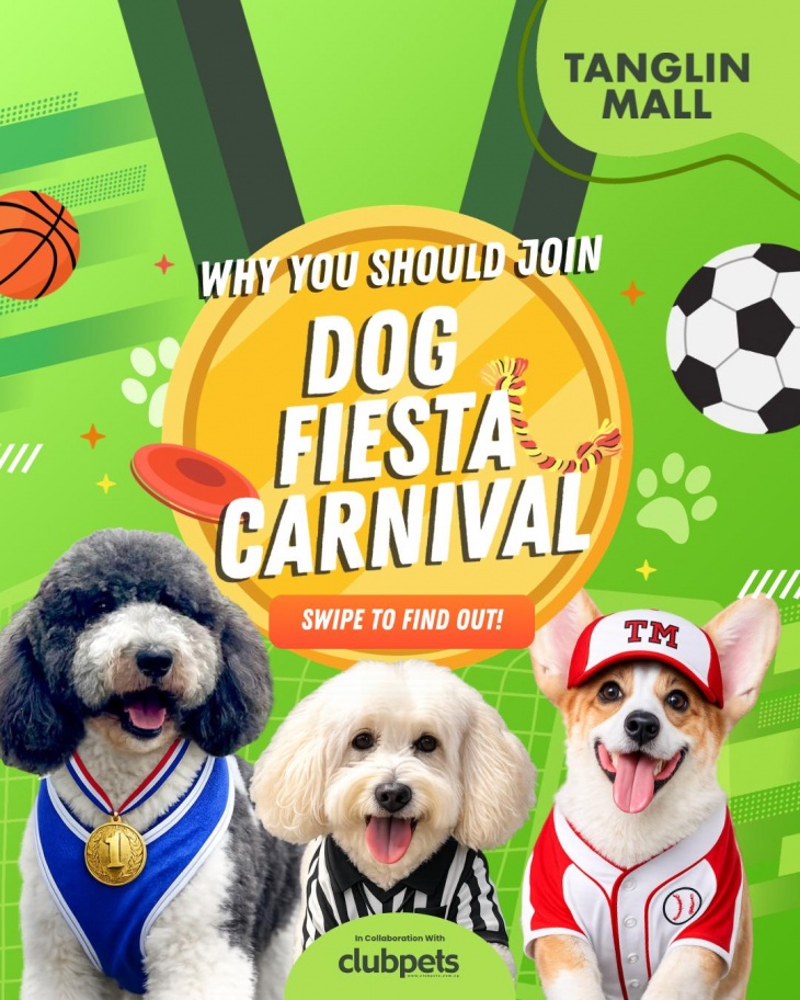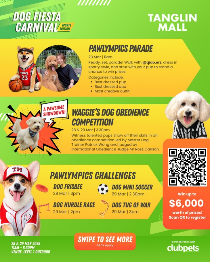 Dog Fiesta Carnival is happening on 28 & 29 March at Tanglin Mall, and it’s going full Pawlympics mode! Dress your doggos in their sportiest fits and join us for a weekend packed with challenges, shopping, live beats, and non-stop tail-wagging fun